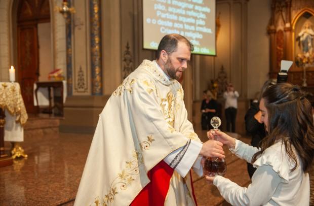 A celebração das 16h foi presidida pelo padre Tiago Camozzato e a segunda, às 19h, pelo padre Volnei Vanassi, vigário e pároco da Catedral Diocesana respectivamente, com a presença das catequistas e dos familiares.