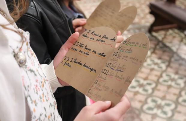 Conduzidas pelo pároco da Catedral, padre Volnei Vanassi, as crianças foram chamadas ao presbitério com um cartão produzido por elas com os 10 mandamentos, sendo que na capa, num coração está o mandamento maior: "Amai-vos uns aos outros, como eu vos amei". Durante o momento, os catequizandos fizeram a leitura dos mandamentos em alta voz para a comunidade