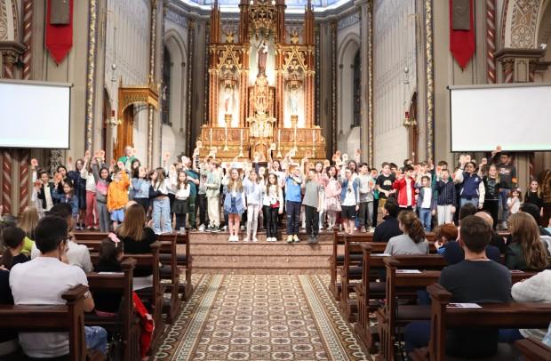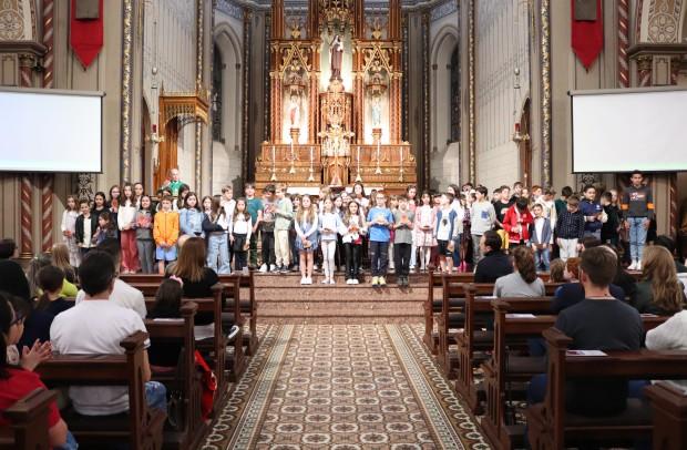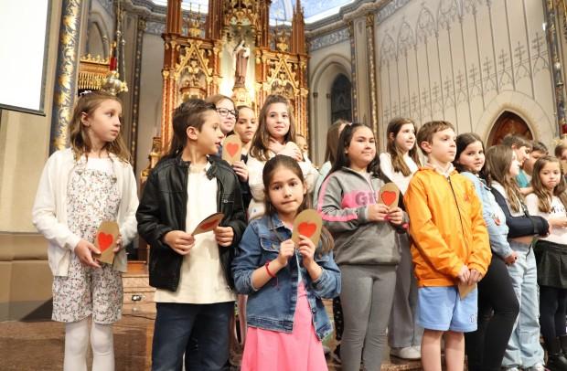 Catequizandos da Eucaristia 1 participam da celebração de entrega da "Lei de Deus", na Catedral de Caxias