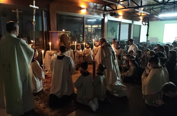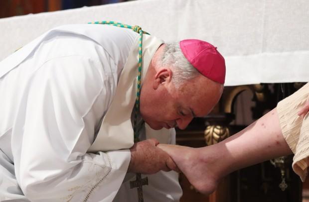 O rito do lava-pés teve pessoas de diversas idades, desde uma gestante até um homem de 33 anos, recordando a defesa e da criação; ao final, depois da transladação do Santíssimo, os catequizandos depositaram flores diante do sacrário