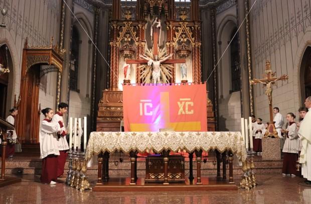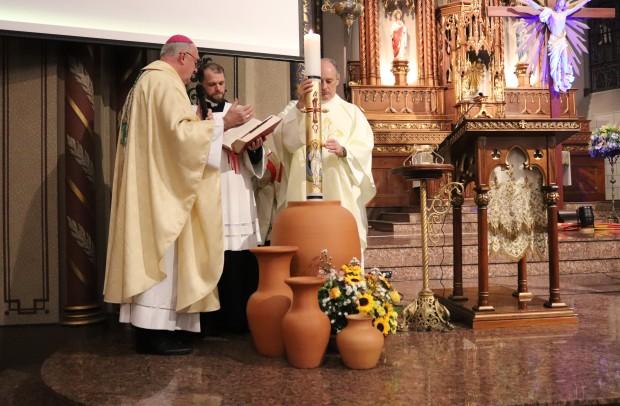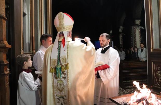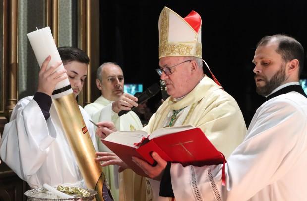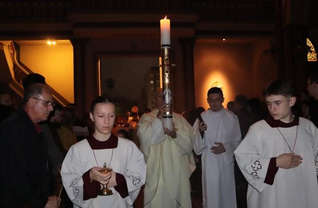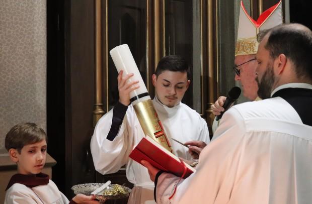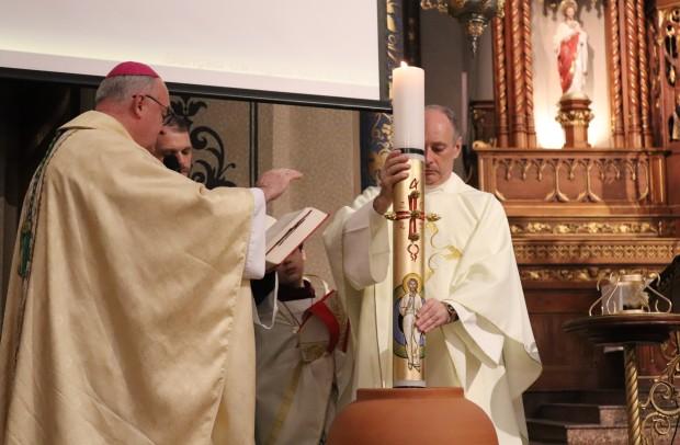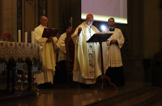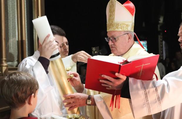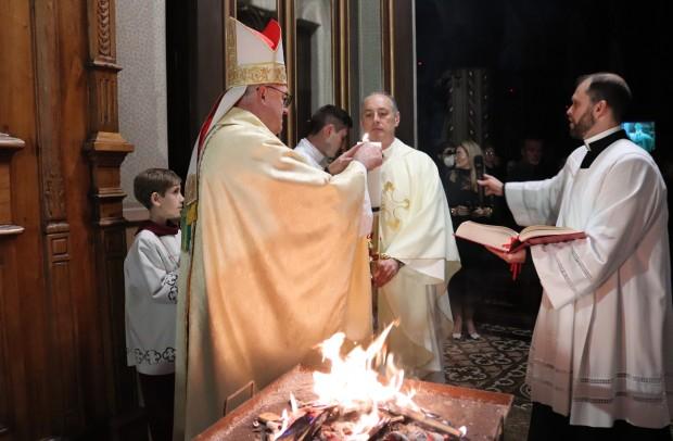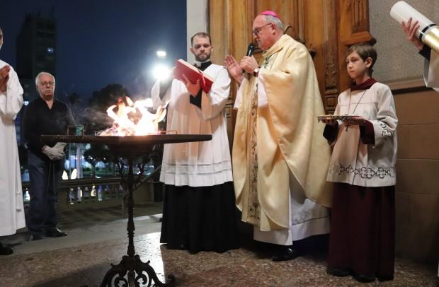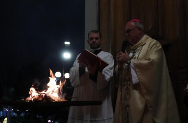 Dom José Gislon preside a Vigília Pascal na Catedral de Caxias, com a bênção do fogo e o acendimento do Círio Pascal