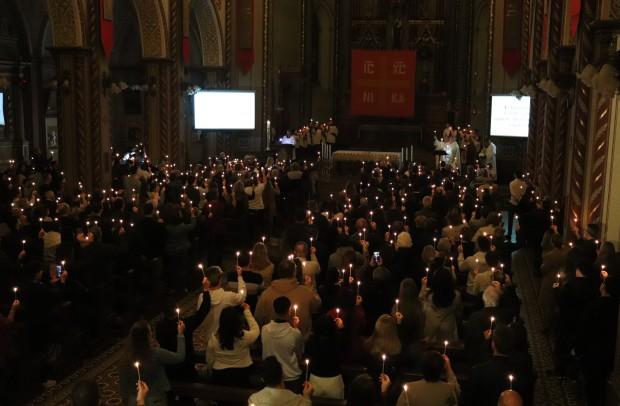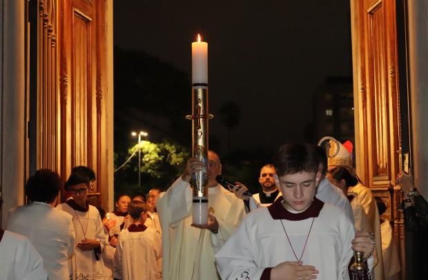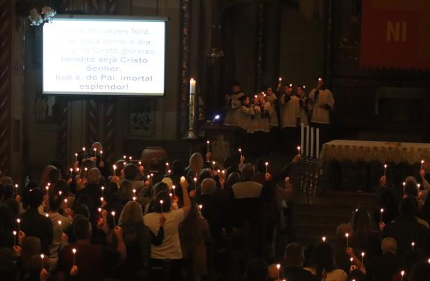 A conclusão do Tríduo Pascal, na Catedral Diocesana de Caxias do Sul - Paróquia Santa Teresa D'Ávila, reuniu centenas de fiéis na noite deste Sábado Santo, 19 de abril. A celebração da Vigília Pascal, presidida pelo bispo diocesano, Dom José Gislon iniciou às 19h, na porta da Igreja-Mãe da Diocese, no centro da cidade, com a bênção do fogo novo do qual foi aceso o Círio Pascal, vela que representa o Ressuscitado e vai acompanhar todas as Missas até os dias 07 e 08 de junho.