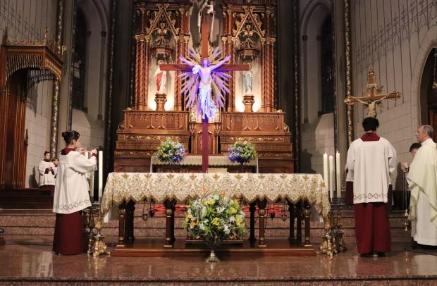 A Missa foi concelebrada pelo pároco da Catedral, padre Volnei Junior Vanassi; durante a celebração também aconteceu a bênção da água e a renovação das promessas batismais