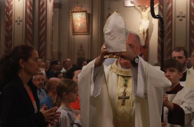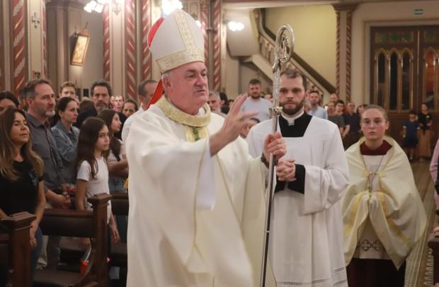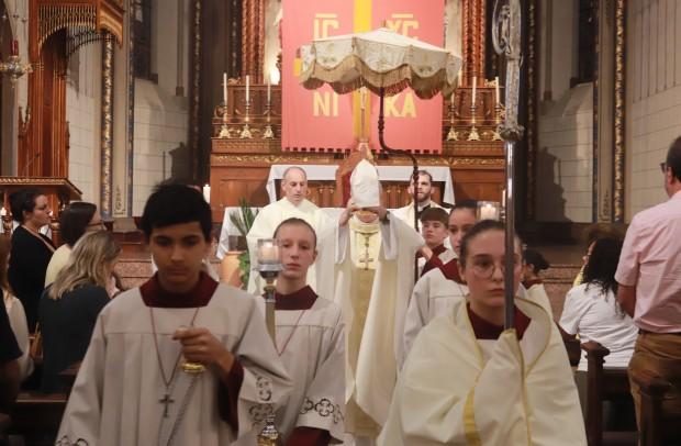 Celebração foi presidida pelo bispo diocesano de Caxias do Sul, Dom José Gislon, e teve o rito do lava-pés em comunhão com a Campanha da Fraternidade 2024; ao final, os catequizandos depositaram flores diante do sacrário