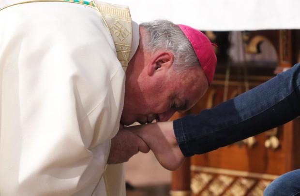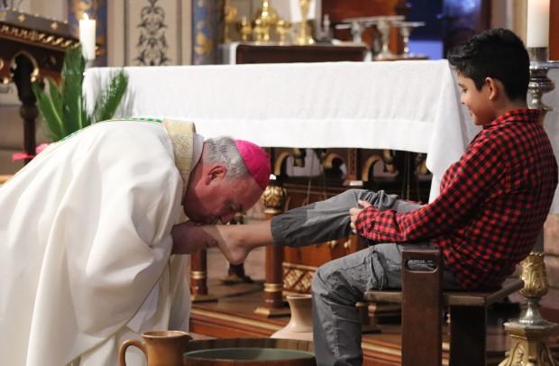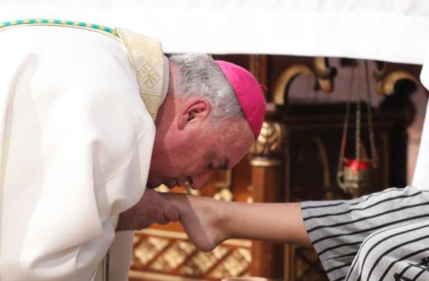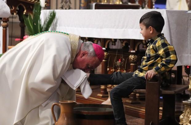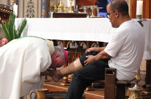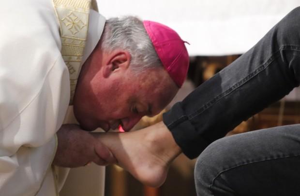 O bispo também conduziu o rito do lava-pés que foi organizado em comunhão com o lema da Campanha da Fraternidade 2024: "Vós sois todos irmãos e irmãs" (cf. Mt 23,8). Uma família de imigrantes venezuelanos, crianças, idosos, catequistas, catequizandos e pessoas com deficiência tiveram os pés lavados, enxugados e beijados por Dom José.