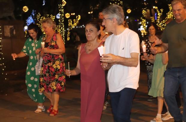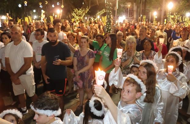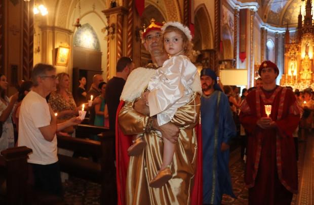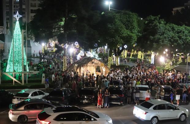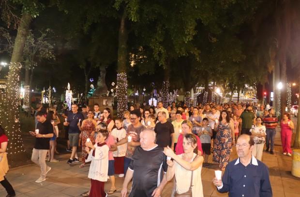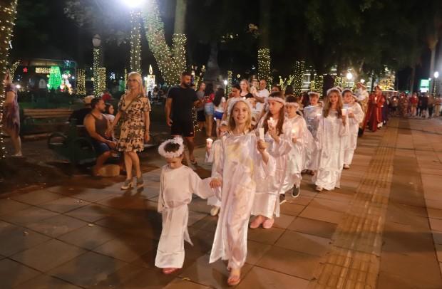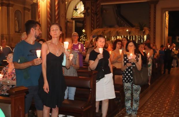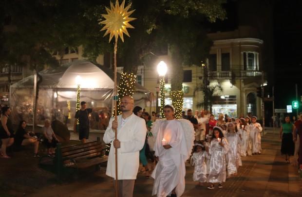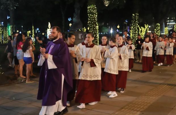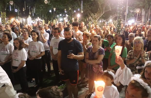 Ao final da Missa, após a apresentação de canções católicas de Natal, guiadas pela Estrela de Belém, com os magos e os anjos, centenas de fiéis com velas nas mãos caminharam pelo entorno da Praça Dante Alighieri, no centro de Caxias. A conclusão da Noite Luminosa aconteceu junto ao presépio, que recorda os 800 anos que São Francisco de Assis realizou a primeira representação do nascimento de Jesus, com a bênção final e o toque dos sinos da Catedral.