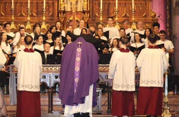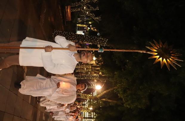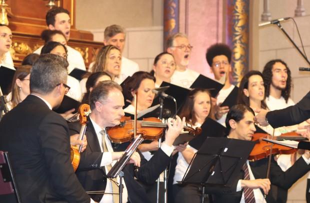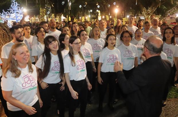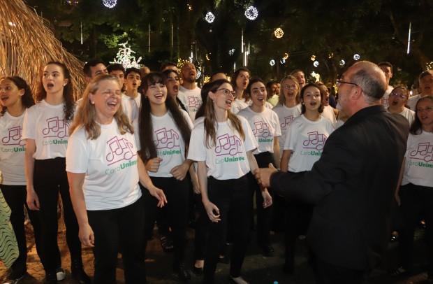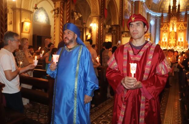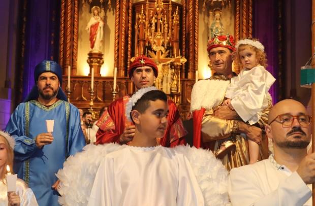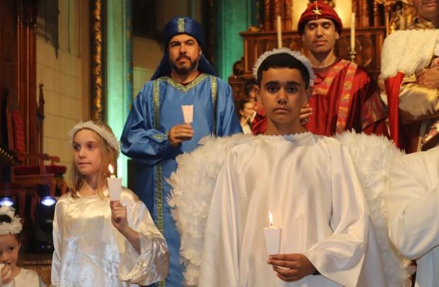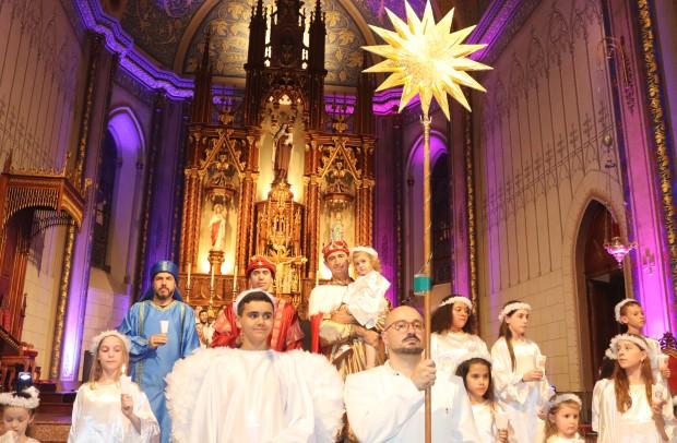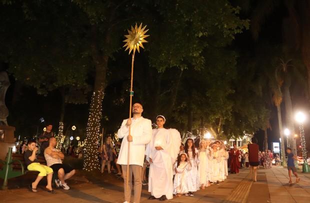 Missa das 19h foi cantada pelo Coro Unimed acompanhado da Orquestra Pró-Música; ao final, guiados pela Estrela de Belém, com os magos e os anjos, os fiéis caminharam no entorno da praça Dante Alighieri até chegarem ao presépio