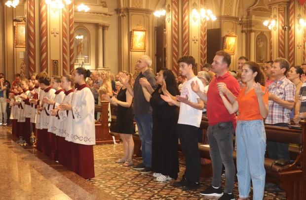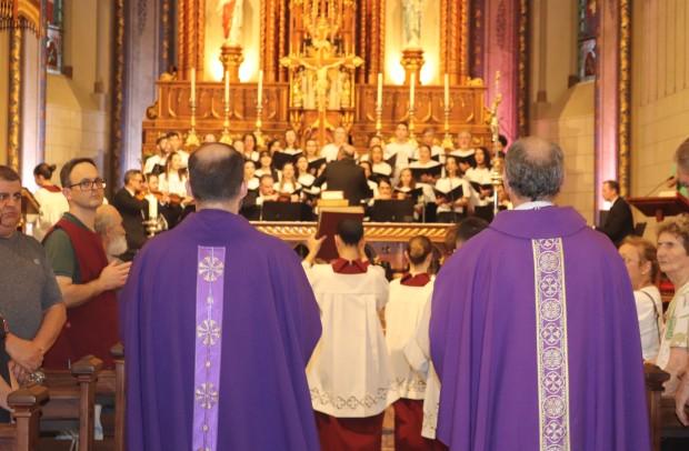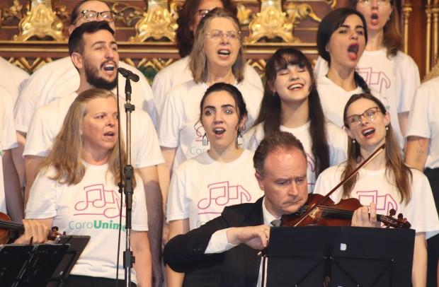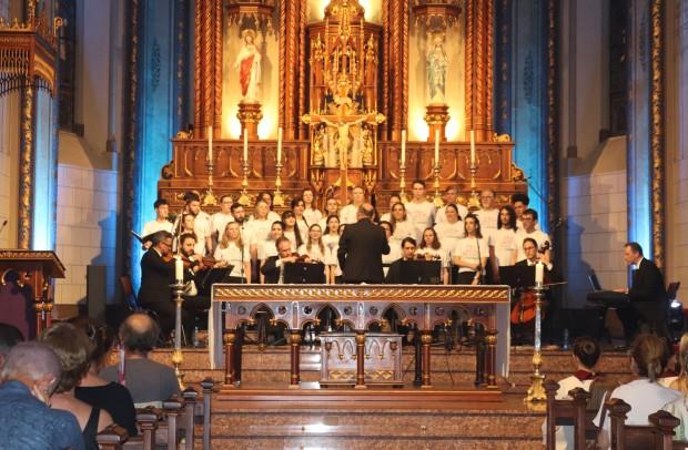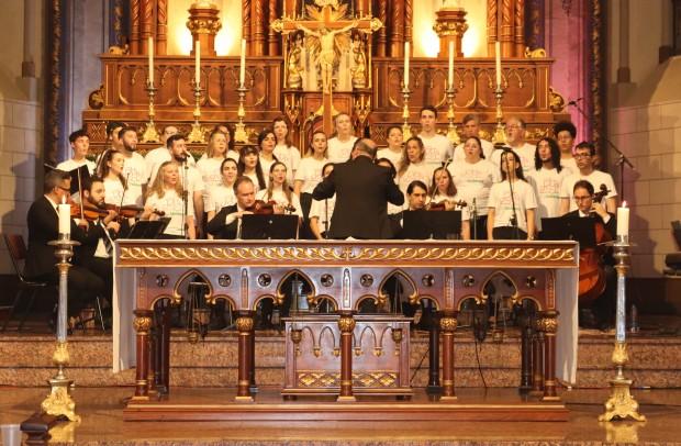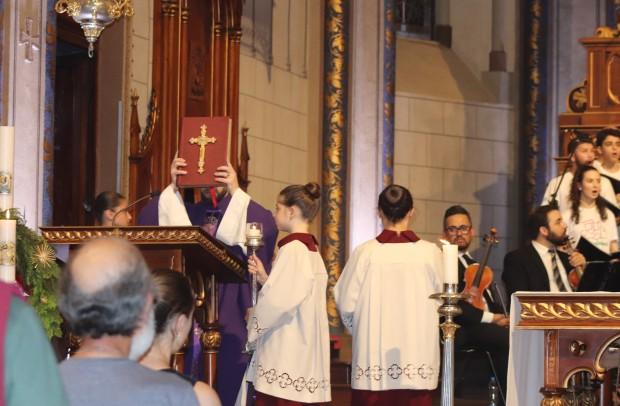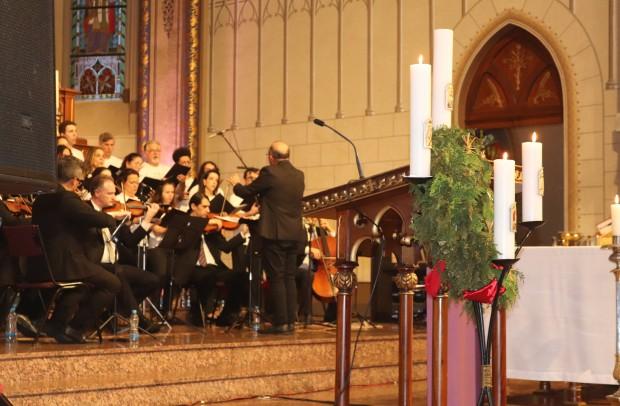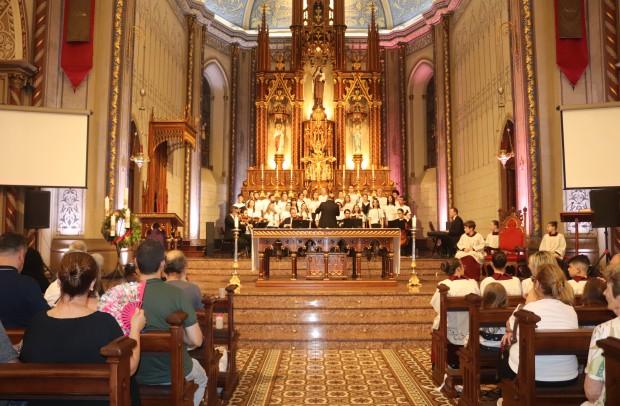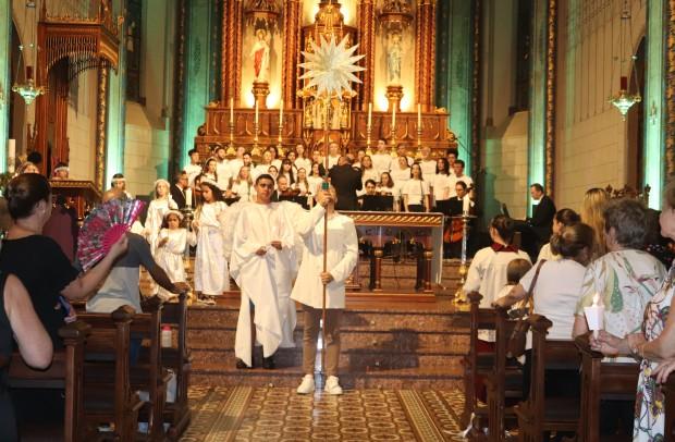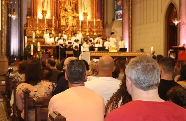 A Catedral Diocesana de Caxias do Sul - Paróquia Santa Teresa D'Ávila ficou repleta de fiéis na Missa das 19h do III Domingo do Advento, 17 de dezembro. Com o tema "Noite Luminosa", a celebração foi presidida pelo pároco, padre Volnei Vanassi, e concelebrada pelo vigário, padre Tiago Camozzato, com a participação do Coro Unimed acompanhado da Orquestra Pró-Música, regido pelo maestro Ivan Montanha.