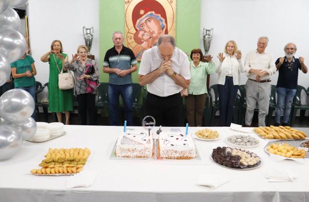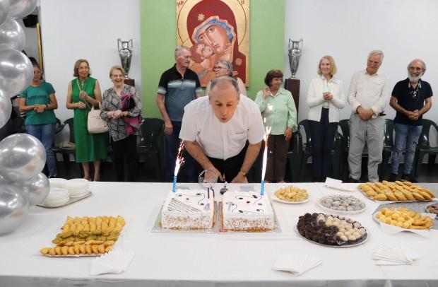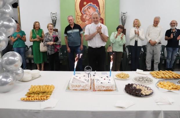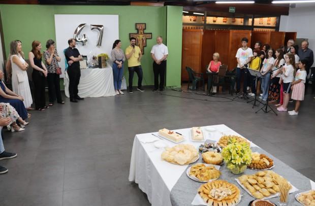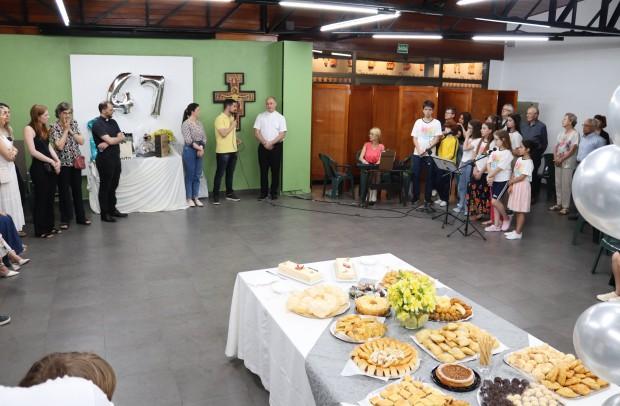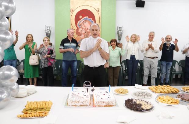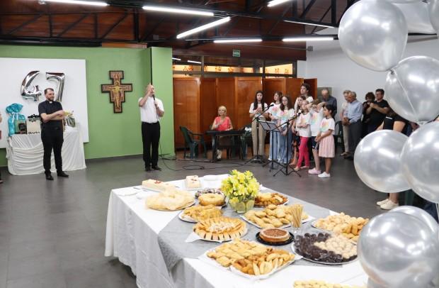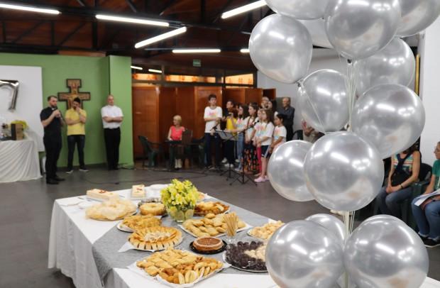 Ao final da celebração, a comunidade da Catedral prestou uma homenagem ao pároco e o presenteou. Após a Missa, que também foi concelebrada pelo vigário paroquial, padre Tiago Camozzato, aconteceu um momento de confraternização no Espaço Mater Dei.