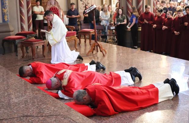 Na Catedral Diocesana, a programação iniciou às 14h, no interior da igreja, com a Celebração da Paixão do Senhor, presidida pelo bispo diocesano, Dom José Gislon. O bispo e os padres se prostraram ao chão em sinal de profunda reverência ao Cristo que entregou a vida pela salvação da humanidade. Logo depois, na Liturgia da Palavra, foram refletidas leituras do Antigo e do Novo Testamento, além da meditação do Salmo 30 (31), seguida da proclamação da Paixão, conforme o Evangelho de João.