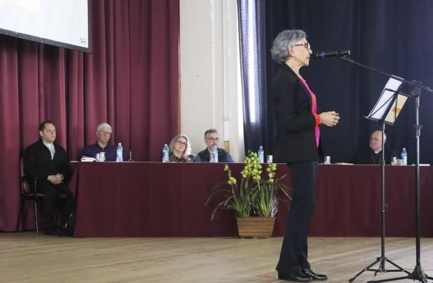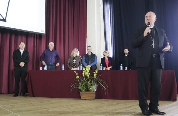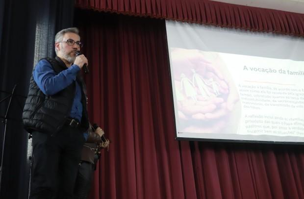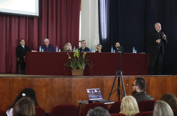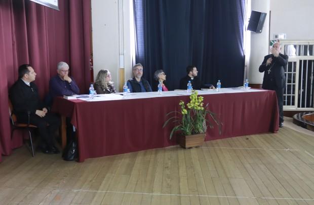 Durante o encontro, no auditório do Colégio São José, painelistas expuseram os principais documentos do pontificado de Francisco, com olhar especial para as famílias, a juventude, o ensino social da Igreja e alegria do Evangelho