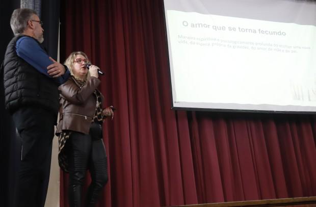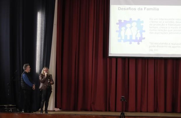 Dando seguimento aos painéis sobre os documentos do pontificado do Papa Francisco, o casal que integra a Comissão Diocesana de Liturgia, Antônio e Fabiane Pasa, apresentou a Exortação Apostólica Pós-Sinodal Amoris Laetitia, sobre o amor na família. Durante a explanação, apresentaram a estrutura do documento e a motivação pela qual o pontífice, em 19 de março de 2016, publicou o documento, que traz diversos elementos sobre o matrimônio e a vida da família e, dentre eles, o acompanhamento pastoral a Igreja para com seus filhos e filhas chamados à vida conjugal.