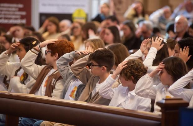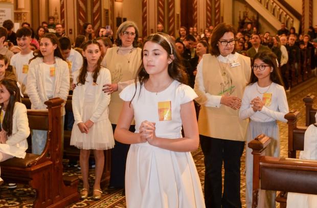 A Catedral Diocesana de Caxias do Sul - Paróquia Santa Teresa D'Ávila ficou lotada em dois momentos, na tarde do sábado, 18 de outubro, para as celebrações da Primeira Eucaristia de 102 crianças, às 16h e 18h. Após a liturgia da Palavra, os catequizandos professam sua fé com a oração do Creio e, no momento da comunhão, recebem o Sacramento da Eucaristia.