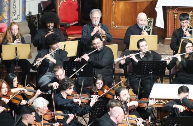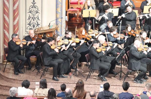 A apresentação, realizada às 20h, contou com a participação dos solistas Karina Dante (soprano) e Maicon Cassânego (tenor). O repertório, cuidadosamente selecionado para a ocasião, mesclou peças clássicas que dialogavam com o ambiente sacro e a celebração religiosa. A interação entre a orquestra e os solistas foi um dos pontos altos da noite, proporcionando momentos de grande beleza e emoção ao público presente.
