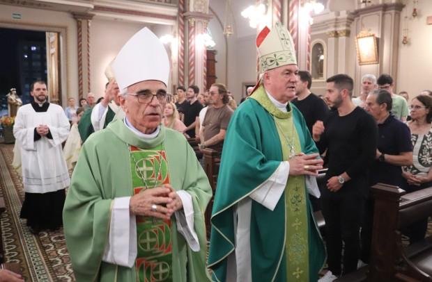 Segunda noite do tríduo em preparação à Festa de Santa Teresa D'Ávila, padroeira da Catedral e da cidade de Caxias do Sul, foi presidida pelo arcebispo de Porto Alegre, cardeal Jaime Spengler e fez memória da dedicação pelo bispo da capital, em 1900