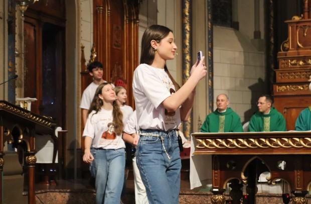 Ao final da Missa, os jovens encenaram um teatro que atualizou a história dos 150 anos da Imigração Italiana, recordando a fé e a determinação dos antepassados. Ao conduzirem a imagem de Santa Teresa D'Ávila pelo corredor central, convidaram toda a comunidade a rezar pedindo a intercessão da Padroeira de Caxias por toda a juventude.