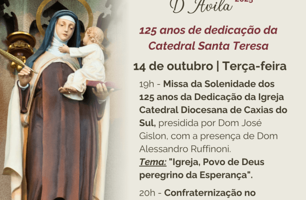 A comunidade de Caxias do Sul se aproxima do ponto alto das celebrações em honra à sua Padroeira, Santa Teresa D'Ávila. A festa de 2025 é especialmente significativa, pois comemora os 125 anos da dedicação da então Igreja Matriz, hoje Catedral Diocesana. A programação iniciou ainda no final de setembro e vai se intensificar nos próximos dias. Os festejos convidam os fiéis a momentos de oração, confraternização e cultura.