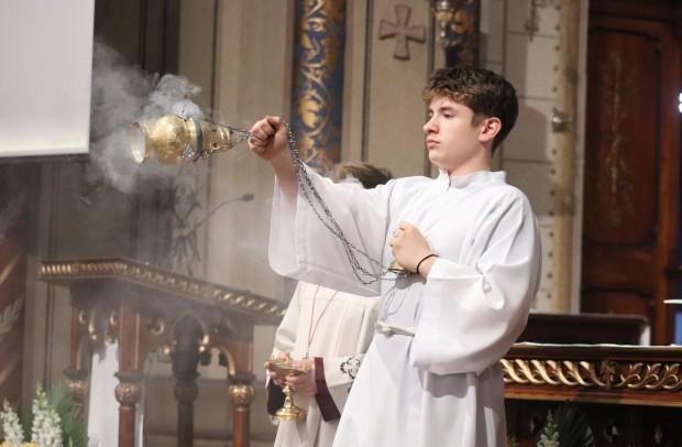 Antes do início da celebração, com a Catedral na penumbra e uma luz focando a imagem de Santa Teresa, foi recitado um poema de sua autoria no qual ela fala sobre a cruz como estandarte da vitória da vida sobre a morte. Logo depois, a procissão de entrada teve a participação de leigos que atuam nos serviços e pastorais que levaram até o presbitério a Cruz do Jubileu de 2025. Atrás, a imagem da Padroeira de Caxias do Sul conduziu os fiéis à oração enquanto toda a comunidade se unia cantando com o Coral Santa Teresa.